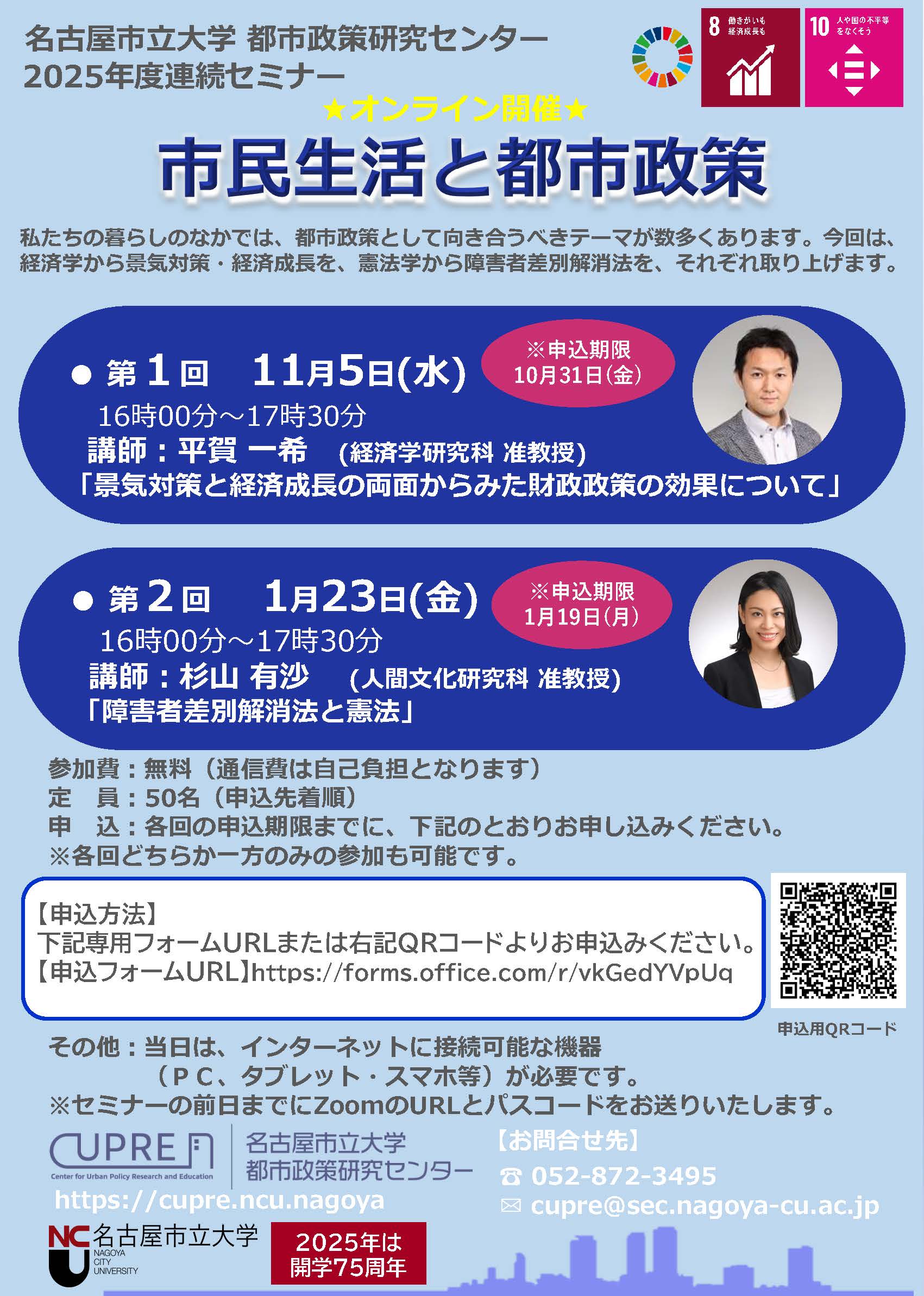 2025年度連続セミナー「市民生活と都市政策」オンライン開催/参加者募集!